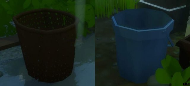 このガイドが作成されている時点で、プレイヤーは 2 つのオブジェクトのいずれかを使用して範囲外に出ることができます。最初のオブジェクトは、家の外にある青いバケツです。これは、使用するのに適したオブジェクトです。プレイヤーが使用できる他のオブジェクトは、洗濯室にある茶色のバスケットです。茶色のバスケットの問題は、青いバケツよりも移動が難しいことです。これが、青いバケツが好まれるオブジェクトである理由です.