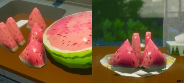 午後、お母さんが留守の間、おばあさんがスイカを食べたいかどうか聞いてきます。はいと答えると、小さなカットシーンが再生されます。