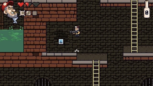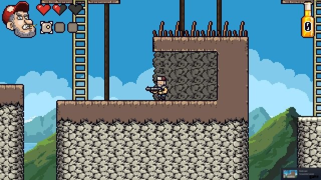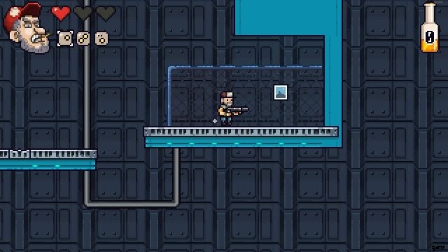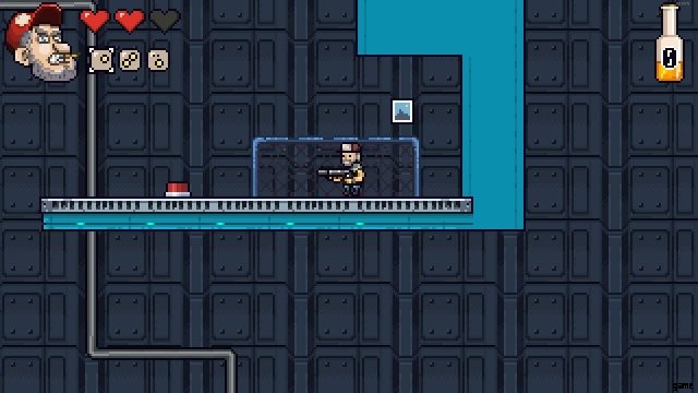 - レベル 3 では、最初のチェックポイントの後、2 つのシューティング ヘッドが厚い壁に取り付けられている長いはしごの近く。上からジャンプして右を押したままにします。