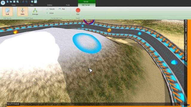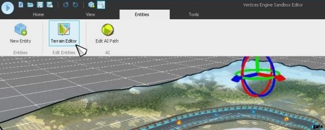 地形を編集するには、まず「地形編集」モードに入る必要があります。これを行うには、エンティティ リボン タブの [地形エディタ] ボタンをクリックします。