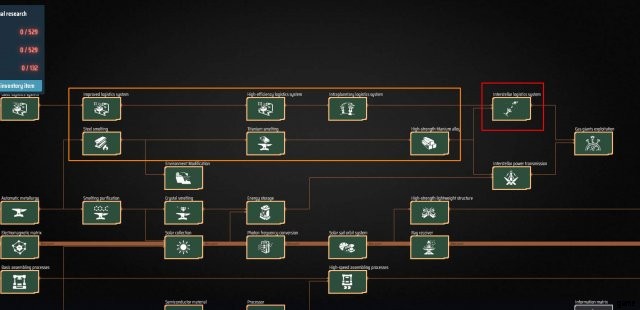 以下に示すように、「星間物流システム」は赤で示されています。この技術が必要です。