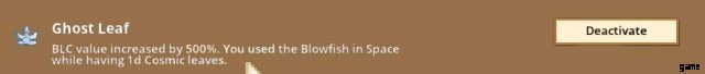 ユニークな葉は非常に役立つと思いますので、できるだけ早く入手してください。簡単なGoogle検索でそれぞれを取得する方法に関するガイドを見つけることができると思います.稼げば稼げるほど良いですが、BLC コインのファーミングで最も重要なのはゴースト リーフです。宇宙マップにいるときにフグを使用し、1d コズミック リーフを持っていると入手できます。これは、通常の農業にかなりの時間を費やした後であれば、はるかに簡単になります。