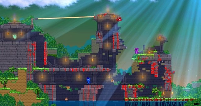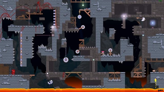 - あなたが行くべき場所はここです。このレベルで他のことをする前に、最初の橋が着陸する場所にドロップし、浮いている岩に向かってジャンプしてから、目のシンボルが付いている壁に向かってジャンプします。ボタンを押すと、実績のロックが解除されます。必要に応じて、上部の出口に向かってコインを配置できますが、必須ではありません。