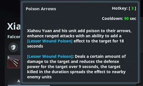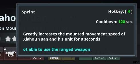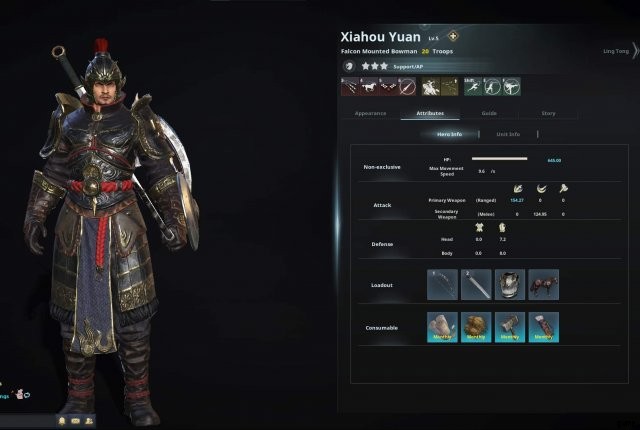Xiahou Yuan は 20 の部隊を持つ隼に乗った弓兵です。