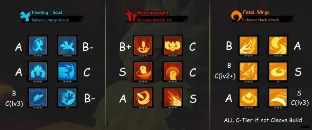 - S:優れた昇天。ビルドと競合しない場合は、ほぼ常に選択します。