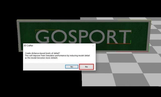 エクスポート操作を完了するには、いくつかのボタンをクリックする必要があります。 1 つ目は、距離ベースの詳細レベルに関するものです。これは単純なオブジェクトであり、パフォーマンスに大きな影響を与えないため、[いいえ] をクリックします。