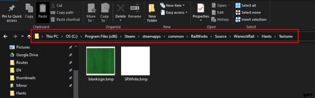 この PC> OS (C:)> Program File (x86)> Steam> steamapps> common> RailWorks> Source> Developer> Product> Textures