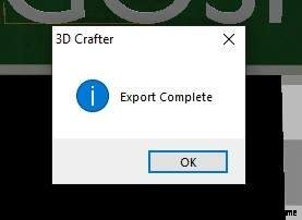 次のボックスは、エクスポートが完了したことを示しているので、[OK] を押します。