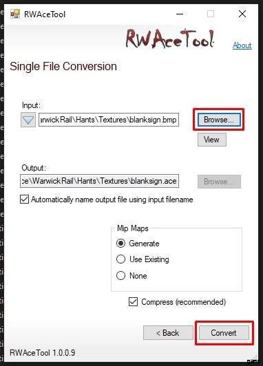 それらを変換するには、RailWorks フォルダー内にある RWAceTool.exe プログラムを使用します。