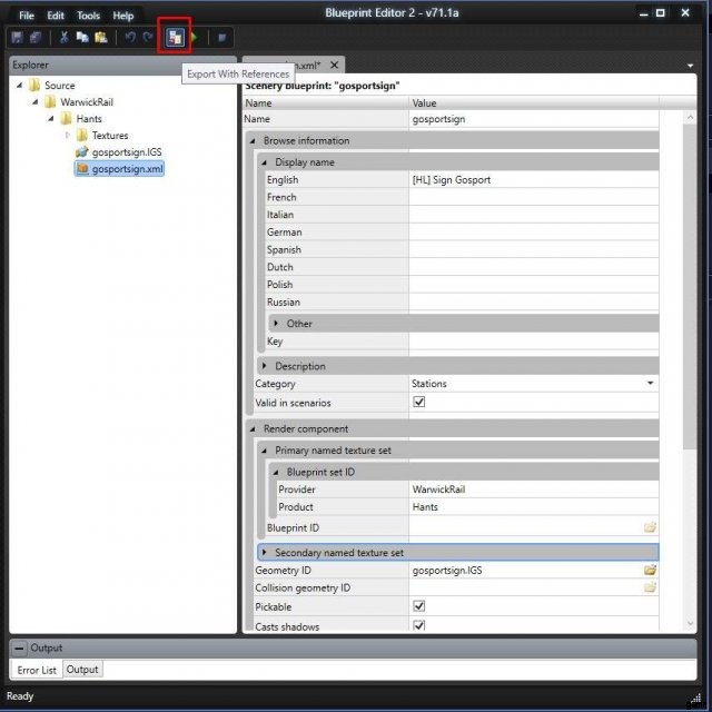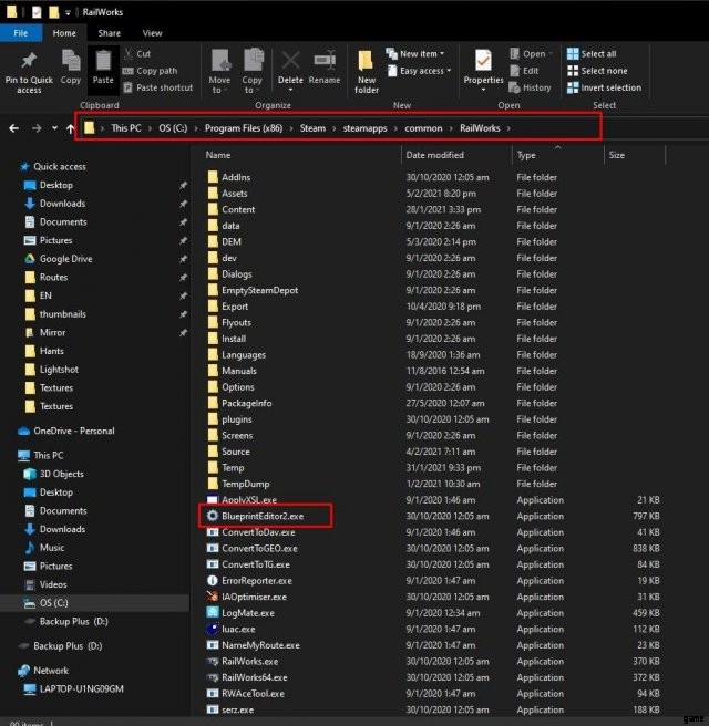 これですべてのファイルが配置されました。項目を Train Simulator にインポートして、エディターで使用できるようにします。このためには、メインの RailWorks フォルダー内にもあるブループリント エディターを使用する必要があります。これは BlueprintEditor2.exe と呼ばれます