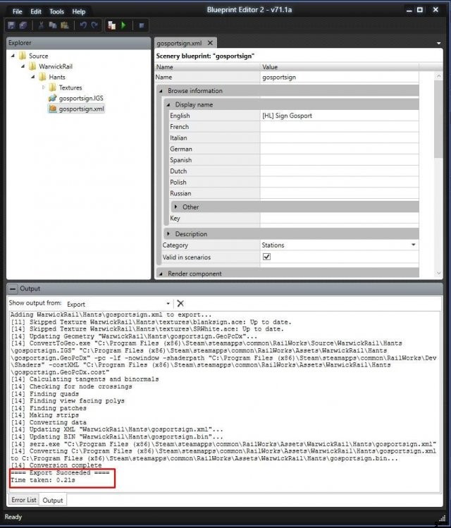 それだけです。最初のオブジェクトを作成して Train Simulator にインポートしたら、より複雑なシーナリー項目に進むことができます。