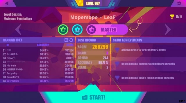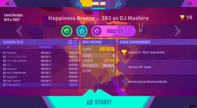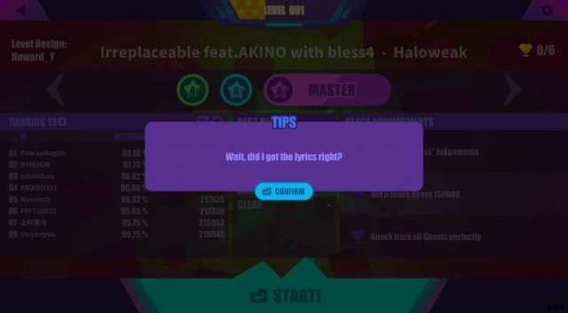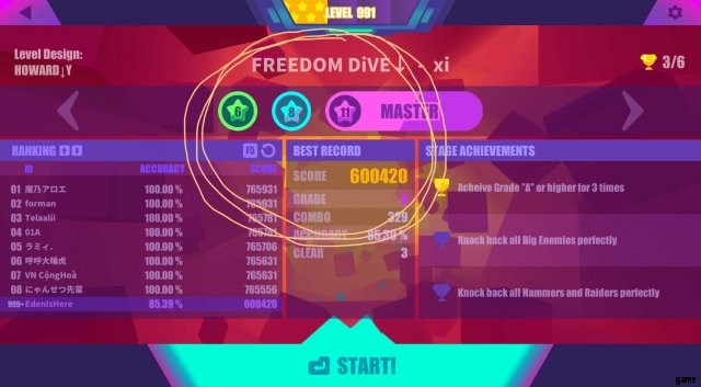 これは難易度に特に変化はありません。曲の異なるバージョンに変化するので、かなりクールです。