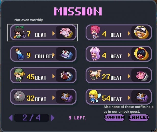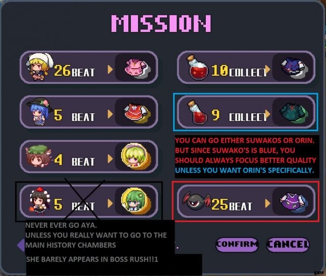 クエストリストに価値がないと感じたら、収集クエストの完了を目指すか、ローグライクモードに入って死ぬ.