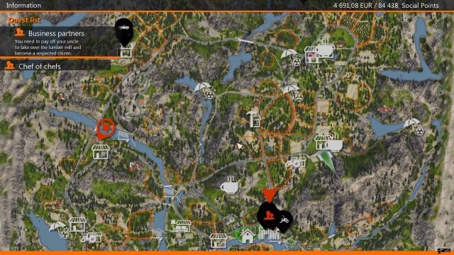 - 1) マップの右下部分、製材所の南東近く;