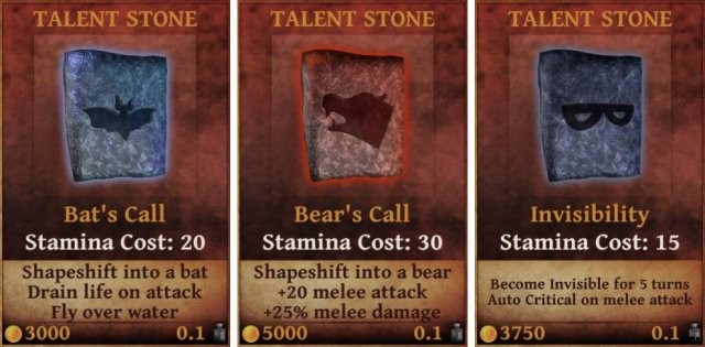 各キャラクターは、ゲームの開始時に 2 つのタレント ストーンを持って始まります。これは、背景の選択によって異なります。それ以外の場合、才能の石は冒険者ギルドからのみ購入できます。