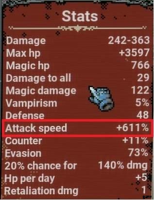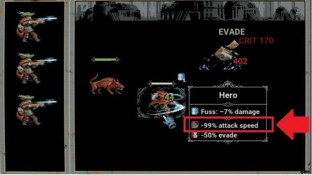 ここでは、何らかの理由で、ヒーローがいくつかのストライキを実行した後、ゲームはヒーローの攻撃を遅くします.私はこれをスログ効果と呼んでいます (ゲームを壊さないようにするためだと思います)。