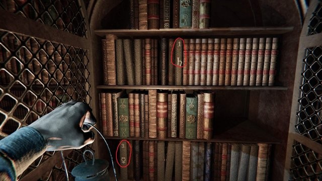- それから、1 階の図書室に行きます。一部の本には、その下に数字と記号が表示されます。そして、最初のスクリーンショット (3410) のコードに従って本を探しています。 (0 本はありません)。