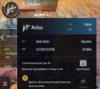 最大レベルキャップはサーバーレベルキャップに依存します。毎日、サーバー レベルの上限が増加します。左上隅にあるクラス アイコンをタップすると、現在のサーバー レベルの上限が表示されます。この上限に達した場合でも、キャラクターは EXP を獲得できますが、レベルにとどまってしまいます。超過した EXP は、後でサミット ストアで使用できます。このストアは、レベル キャップに到達すると一定時間アンロックされます。サミットストアでは、経験値を使ったり、お得な商品を購入したりできます。