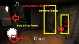 - すべての部屋、場所で、おばあさんから隠れることができます。ベッドの下、キャビネット、ボックスのように。近くに行って、右上隅のアイコンをタップするだけです