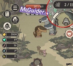 マップ上の特定の数の動物を飼いならすことができることに注意してください。上限は画面右上で確認できます。また、すべての動物を飼いならすことはできないことに注意してください。蜘蛛の巣のマークが付いた動物のみ飼いならすことができます。動物にマークがない場合は、コインを取得します。動物にクモの巣のマークがある場合は、2 つのオプションが表示されます。テイム(クモの巣のアイコン)とマテリアル(骨、羽、牙)。飼いならすには、クモの巣のアイコンをタップします。