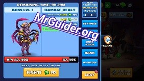 クランに参加すると、ボス レイド モードにアクセスできます。このモードをプレイするには、少なくとも 400 のチーム パワーが必要です。このモードでは、クラン メンバーは強力なボスと戦い、ダイヤモンドを獲得できます。ボスのHPは非常に高く、時間は限られています。できるだけ早くボスを倒してダイヤモンドを獲得してください。