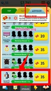 または、ダイヤを使ってゴールデンチケットを入手することもできます。ダイヤモンド 6 個と引き換えにゴールデン チケット 1 個を入手できます。そのため、ダイヤモンドを他のアイテムに費やすべきではありません。それを使用してゴールデン チケットを取得し、ゴールデン チケットを使用してアドバイザー/アンクル リッチをアップグレードします。
