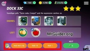 レイドチケットを使用して無料報酬を獲得できます。どのように?レイドチケットを使用するには、レベルを星3でクリアする必要があります。ステージで 3 つ星を獲得したら、そのステージに戻り、レイド オプションをタップして、すぐに報酬を獲得してください。