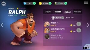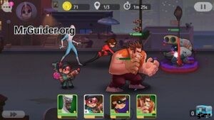 ゲーム開始時には、ラルフ、エラスティガール、フロゾン、ヴァネロペがいます。残りの文字はロックされています。お金やダイヤモンドを使わずに、すべてのキャラクターを無料でアンロックできます。ただし、数日 (場合によっては数か月) かかります。