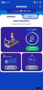 運動エリアを改善することは、利益を増やす最良の方法の 1 つです。ゲーム画面の左上隅に表示されている現在の収益統計をタップすると、マシンと入口の 2 つの収益源が表示されます。入場料から少し稼ぎますが、エクササイズ エリアのマシンとワークアウト スポットで最も多くのお金を稼ぐことができます。