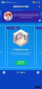 ジムの改修またはアップグレードに必要な金額が十分に揃ったら、ためらうことなく実行してください。それがゲームの一部です。改装により利益乗数が得られ、収益が増加します。詳細については、こちらの Idle Fitness Gym Tycoon ガイドをお読みください。
