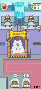 画面にはシバとシバヒーローズが映っています。 Shibase には、新しいヒーローを募集するための募集センター、新しいヒーローを募集するためのテレビルーム、ビデオ広告を見て無料のコインを取得するため、保存するためのアプリ内購入を行う、またはダイヤモンドと引き換えにコインを取得するための場所がたくさんあります。シバをタップしてミッションに送るだけです。通常のミッションには費用はかかりませんが、特別なミッションにはコインがかかります。