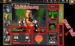 ヒーローのプロフィール ページ メニューで、ギア タブに移動します -> 空いているスロットがある場合は、それをタップしてギアを選択します -> 装備またはアップグレードします。パーツを使用してヒーローのギアをアップグレードできます(戦闘で敵を倒したり、イベントやクエストを完了することで入手できます)。