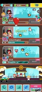 マップに移動すると、新しい場所で新しいフランチャイズを開くオプションが表示されます。ニューヨークからスタートし、ラスベガスなどと続きます。新しいフランチャイズを購入するオプションがない場合は、目標を達成していないことを意味します。それは同じ画面に書かれます。たとえば、新しいフランチャイズを開くには、さらに「X」の金額を費やします。水族館の購入/アップグレードに投資/支出して稼ぎましょう。