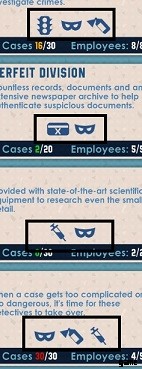Mask Symbol は、盗難または詐欺関連の犯罪に関連しています。すべての研究施設がこれらのケースを調査できます。戦術部隊部門を建設し、武装部隊を雇ってこれらの犯罪者を逮捕してください。