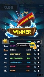 ⇒試合終了時に最も多くのポイントを獲得したプレイヤーが勝利し、最も高いサメポイントを獲得します。画面右上のポイント表で確認できます。ジョーズで。このゲームでは、他のプレイヤーを破壊し (プレイヤーのレベルが自分のボートよりも低いことを確認してください。ジョーの場合は気にしないでください。衝突するだけです)、スイマー、クリーチャー、ボーナス シップ、マップ上のスクラップ アイテムを食べることでポイントを獲得できます。