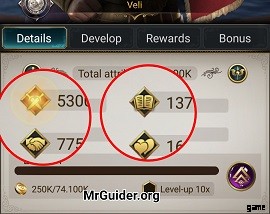 Viziers メニューに移動 -> 任意の Vizier をタップします。開発タブに移動します。そこにあなたはすべての才能を見るでしょう。プレーヤーは、強化されたバッジとブック XP を使用してこれらの才能をアップグレードできます。 Book XP は一般的なアイテムで、メイン クエスト、サブ クエストを完了することで簡単に取得できます。しかし、それを使用するには、バックパックに移動します -> それをタップ -> 使用します。詳細に記載されているように、バッジ パックを入手できます キャンペーンモード、イベントから。それを開くと (バックパック メニューに移動) -> 強化されたバッジを取得します .このアイテムはショップからも購入できます。 400 ダイヤモンドを使う。