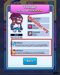 一部のエピック マネージャーには、特別な能力が備わっています。例えば; Thunder は、Idle Prison Tycoon ゲームの壮大なマネージャー/ガーディアンです。彼の能力は、ダメージを 200% 増加させ、セルの収益を 100% 増加させることができます。これらのマネージャーを最高のセルに任命するようにしてください。マネージャータブに移動 -> マネージャーアイコンをタップ -> マネージャーの名前のすぐ下で、その希少性を確認できます。ありふれた、まれな、叙事詩。