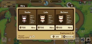 ここで労働者を雇うことができます。ワーカー用の空のスロットが必要です。黄金の松ぼっくりを支払うと、もう 1 つ入手できます。そして、通常の松ぼっくりを払って労働者を雇います。まず、雇用広告を公開する必要があります。松ぼっくりを使用するか、ビデオ広告をご覧ください。