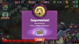 モンスターをホラータウンに送ると、人間は怖がります。恐怖の顔を収集します。十分に収集すると、無料でドル/請求書を獲得できます。スケアオメーターを確認するには、画面上部のスケアフェイスアイコンをタップしてください。