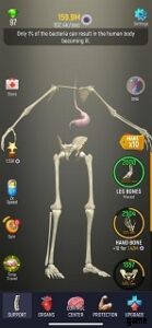 各タブには、いくつかの人体パーツが表示されます。それらを購入すると、そのパーツが画面に表示されます。基本的に、人体モデルとして表示されます。例:サポート セクションでは、セルを使って脚の骨、手の骨などを作成/発見できます。これらのパーツが増えると、セルの生産率が最終的に増加します。たとえば、体の部分のアイコンに注目してください -> 50/秒のような数字に気付くでしょう。つまり、もう一度取得すると、またはゲームの意味で、もう一度アップグレードすると、セルの生産率が 50 増加します。