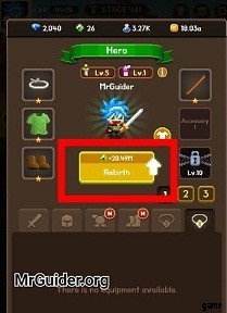 In Videogame Guardians game, to level-up, you need to “rebirth”. You can rebirth after passing a certain stage. For instance, for the first time, you can rebirth after you pass the 100th stage. Next time, on 200th, then 300th, then, 400th, and so on.