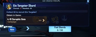 シャードの検索ボタンをタップすると、ヒーローのシャードのソースが表示されます。彼/彼女のかけらを獲得できるキャンペーン ステージが表示されます。粉砕可能でない場合、ステージは表示されません。