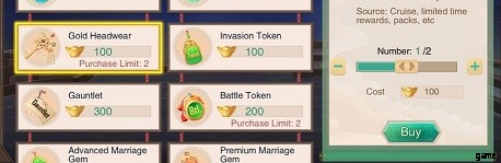 配偶者の親密度を上げるには、親密度EXPを与える必要があります。親密度EXPは、彼女に贈り物をしたり、ゴールドで好意を示したりすることで獲得できます。ギフトは、ゴールドと引き換えにショップから入手できます。例 – ゴールド ヘッドウェアは親密度 EXP を付与します。また、これらのギフトアイテムは、クルーズ、期間限定報酬から入手できます。