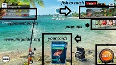 特定の魚を釣るには、ルアーを変更する必要があります。たとえば、ホグフィッシュを捕まえるには、ホグフィッシュのルアーが必要です。真鯛を釣るには真鯛のルアーが必要です。画面中央下のルアーカードをタップすると、ルアーを切り替えることができます。より多くのポイントを獲得したプレイヤーが勝利します。より多くのポイントを獲得するには、より良い魚を釣る必要があります。より良い魚を釣るためには、ルアーをアップグレードし、パワーアップ、ロッドの特典、ボーナスなどを有効にしてください。