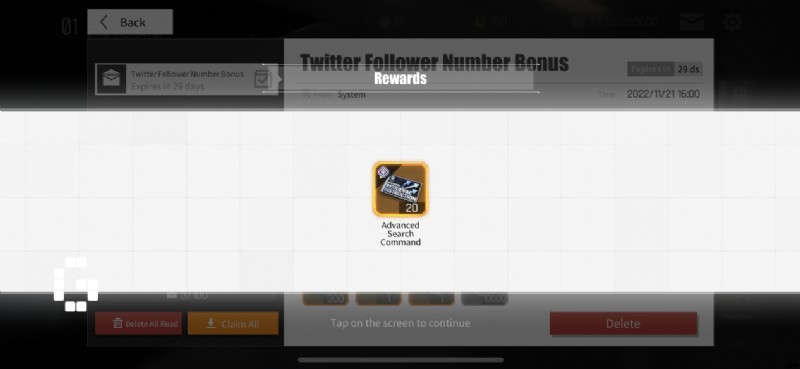 - チャプター 1-1 が完了したら、メイン メニューから受信トレイに移動して、最大 20 回の無料プルの起動報酬を受け取ります。