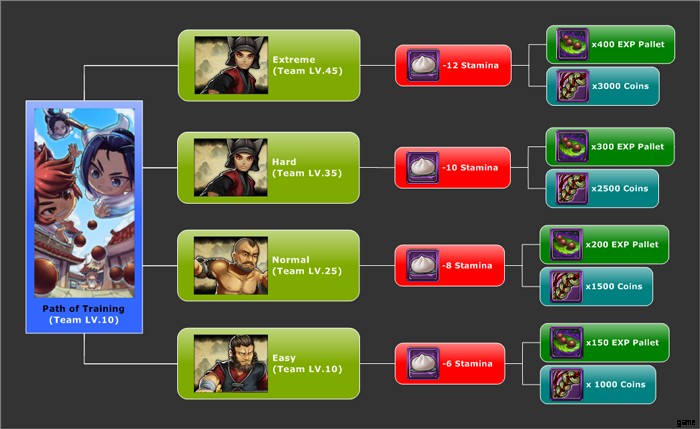 トレーニングのパス チーム レベルがレベル 10 になると、ロックが解除されてプレイできるようになります .ただし、他の難易度ステージはアンロックされます チーム レベルがエクストリームのレベル 25、35、45 に達したら、あなたに代わって。