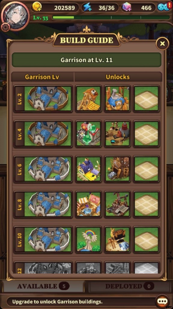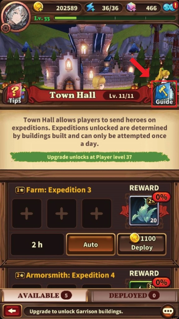 ヴァリアント フォースで 、タウンホールをアップグレードしながら建物を建てることができる小さな町があります . 数多くの建物の中から選択しなければならない土地が与えられます (タウンホールのレベルに応じて)土地に配置します。 タウンホールを選択したら、[ガイド] タブで、建設可能な建物を確認できます。