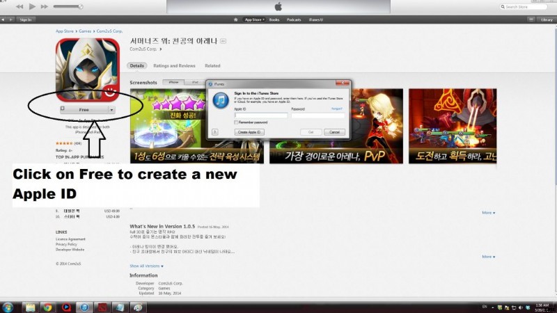 ランダムな無料アプリをクリックして、[ダウンロード] をクリックします。ログインするためのウィンドウが開きます。代わりに [Apple ID を作成] をクリックしてください。