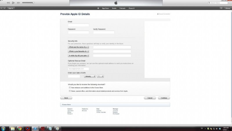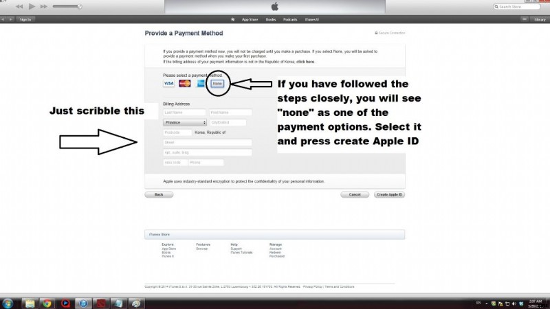 すべてが完了すると、支払いオプションに「なし」が表示されます。それを選択して、Apple ID の作成に進みます。
