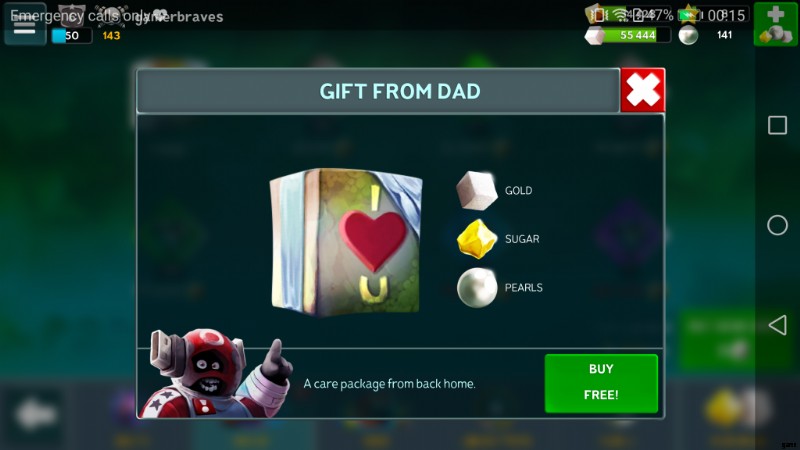 市場から「お父さんからの贈り物」ケア パッケージを見つけることができます。それを開くと、金、砂糖、真珠、またはそれらすべてを一度に取得できます(運が良ければ)。マーケットプレイスは 2 時間ごとに更新されます (つまり、2 時間ごとに無料のケア パッケージが提供されます)。市場サイクルごとに 1 回、広告を見て無料で更新できます。
